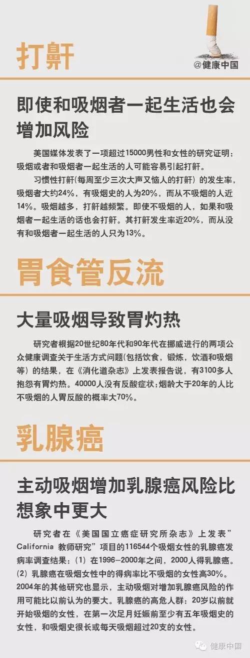 不少网友知道吸烟会导致肺癌,肺气肿和心脏病,但是他们仍然在吞云吐雾。为了帮助他们悬崖勒马,健康中国列出了如果不戒烟,吸烟会给你的生活带来鲜为人知的结果清单。
