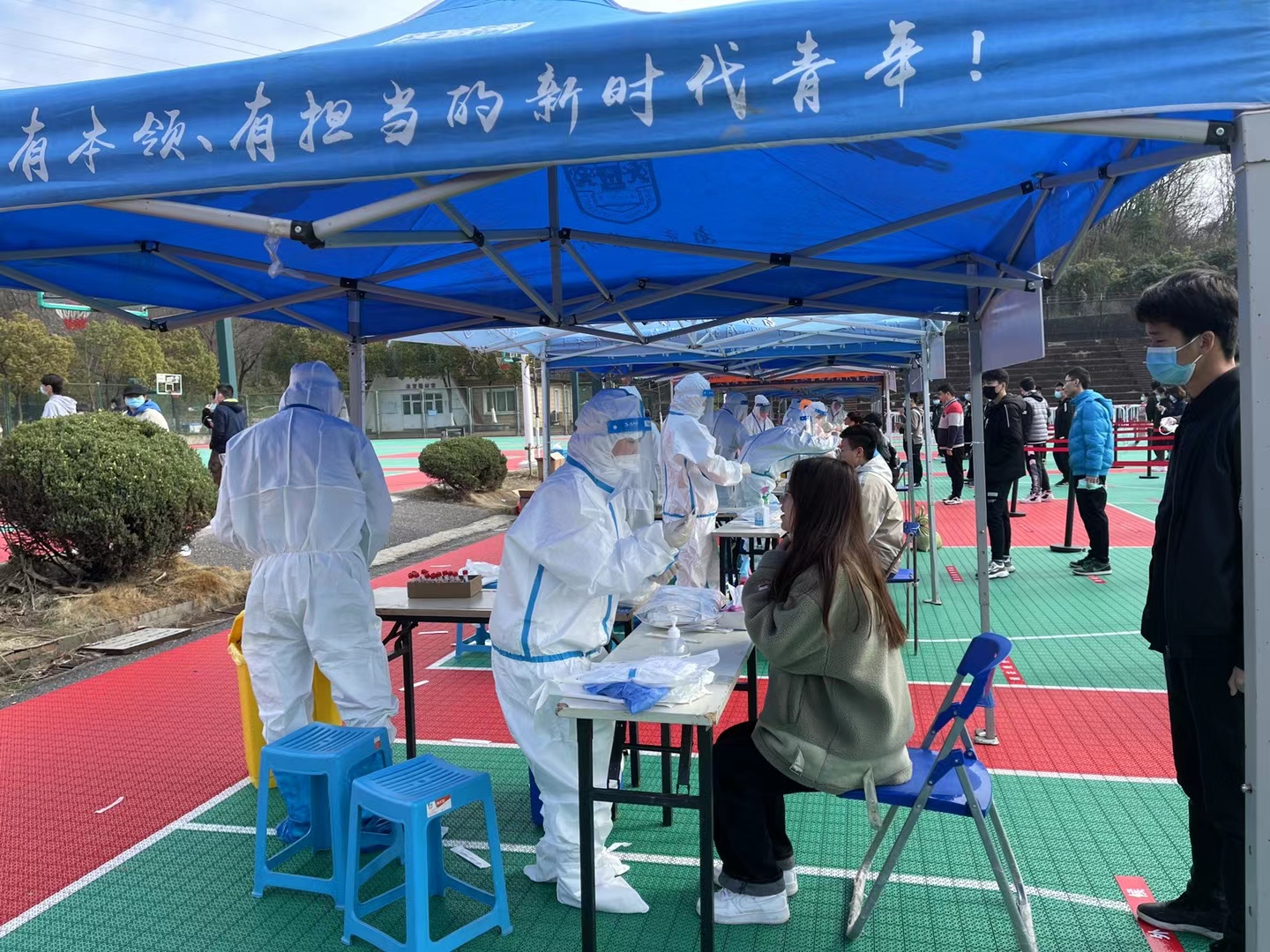 为贯彻落实江苏省教育厅、省卫生健康委、省财政厅《关于2021年春季学期返苏高校大学生核酸检测工作方案》的精神,我校于3月2-3日对近期从江苏省外返苏的1.8万余名学生开展核酸采集检测工作。为确保此次核酸检测工作顺利进行,学校第一时间研究制定了《春季学期开学返苏人员大规模核酸检测方案》,积极联系检测机构,组建志愿者队伍,保证了检测工作的安全、有序开展。