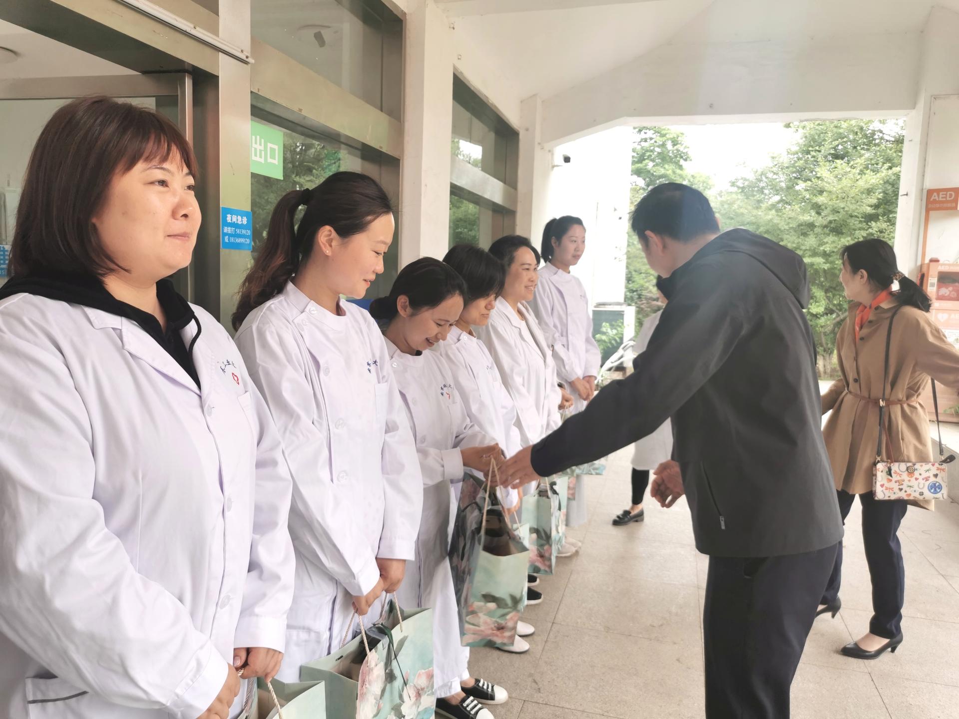5月12日是国际护士节,趁此契机为了鼓舞我校全体护理人员,2021年5月11日中午一点,后勤保障处特地为校医院的护士们举办了一个简短而又温馨的护士节庆祝仪式。后勤保障处处长朱兴同、后勤党委书记陈娟分别向广大护理人员送上了节日的祝福,对校医院护士们长年累月辛勤的付出给予了高度肯定,并鼓励护士和全体医务人员在工作中继续一如既往发扬白衣天使的精神,为我校师生的健康安全保驾护航。同时后勤保障处还给全体护士送上了节日的慰问,让护士们感受到后勤保障处大家庭的温暖和组织对医院护理工作的重视,她们表示将不负重托,持之以恒做好护理工作,发挥专业优势充分服务校园广大师生。