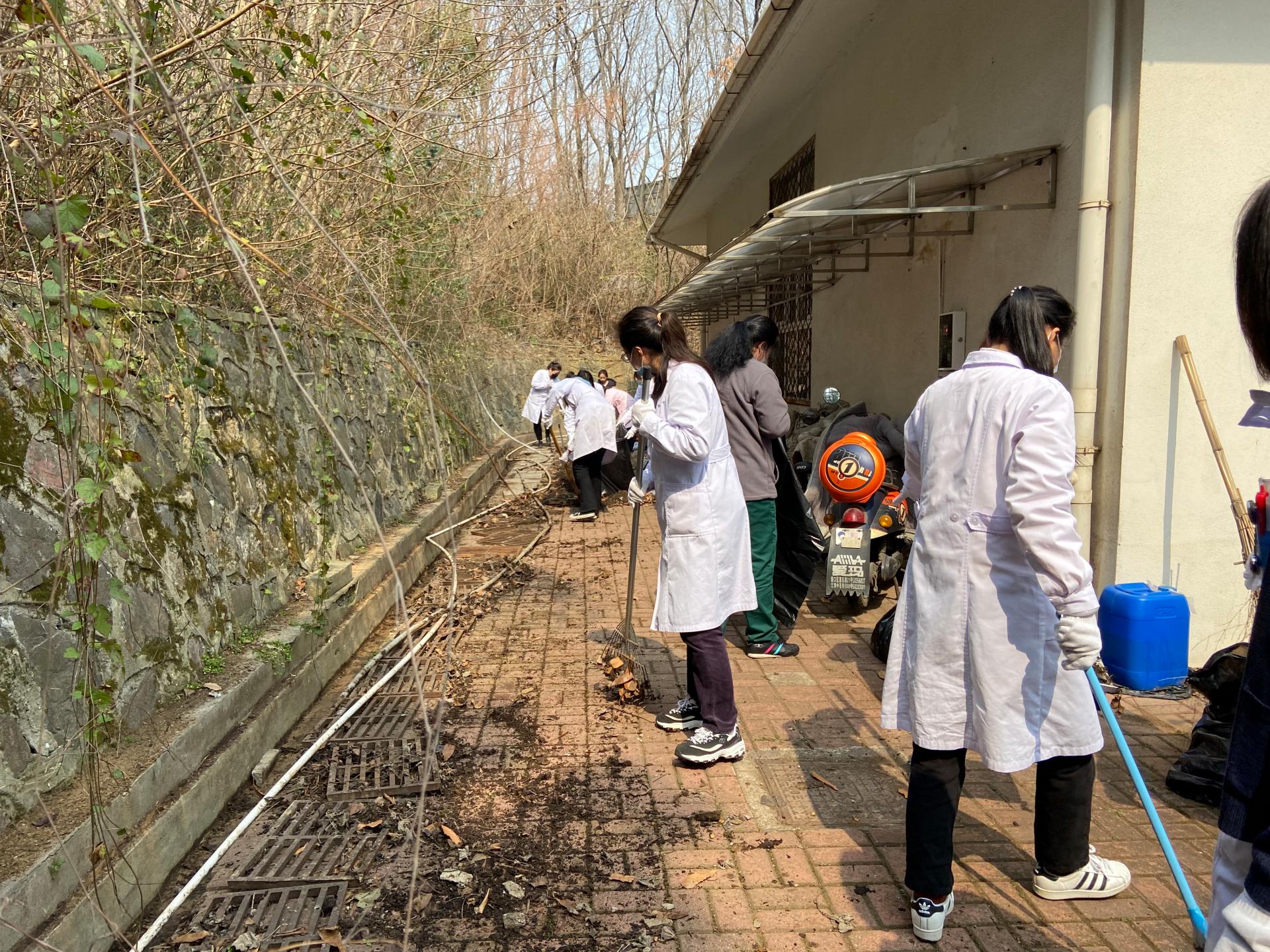 2022年3月2日下午,校医院医院组织开展爱国卫生运动大扫除工作,除一线在岗医务人员外,所有工作人员均参与了此次大扫除活动,活动主要针对医院责任区打扫卫生死角,清理污水沟、杂草落叶等,以净化医院环境。