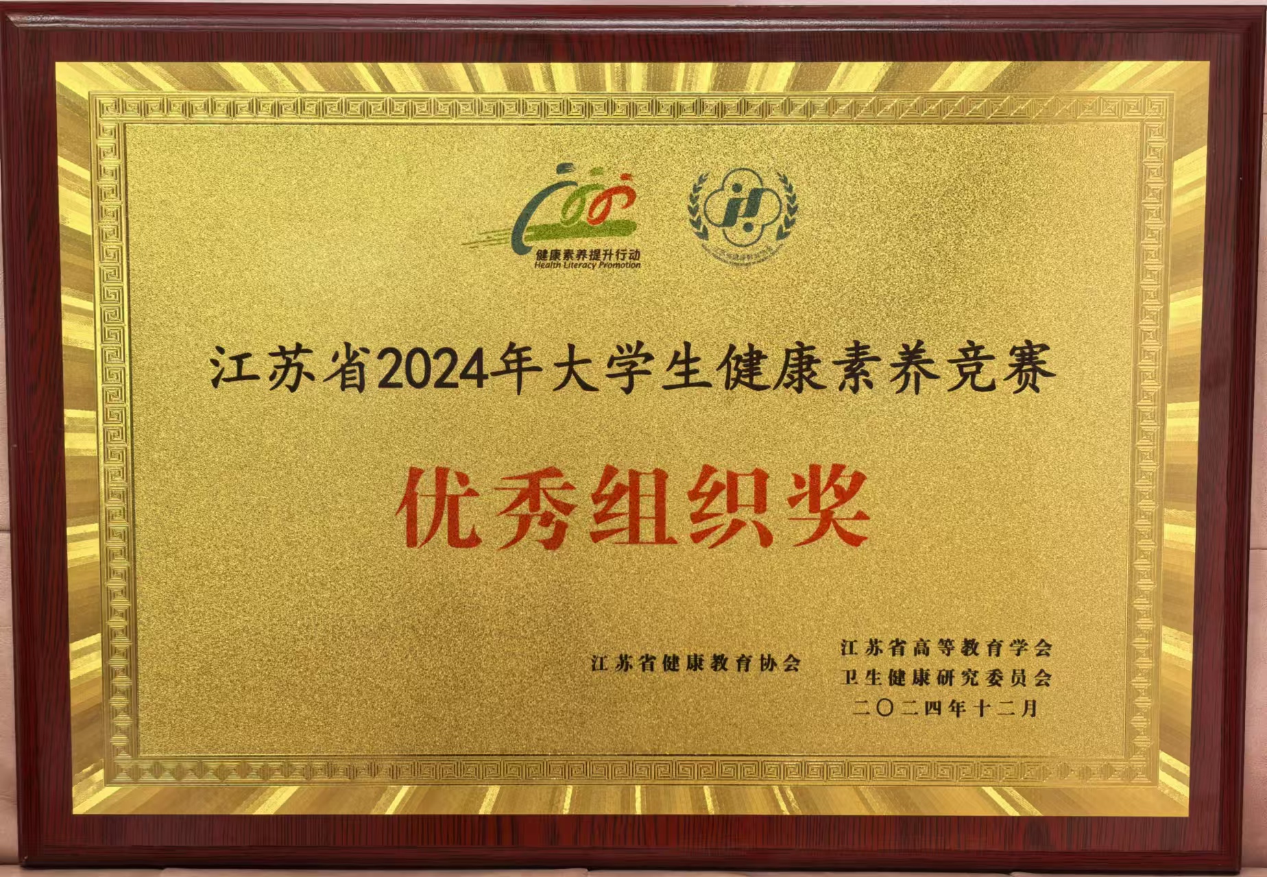 2024年12月7日,在东南大学举办的江苏省2024年大学生健康素养竞赛中,南京工业大学校医院带领青春健康协会代表队荣获三等奖,并被授予优秀组织奖。