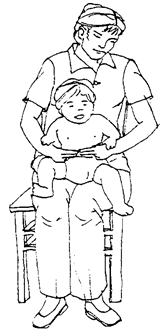 坐位:使患儿背靠骑坐在抢救者的两大腿上