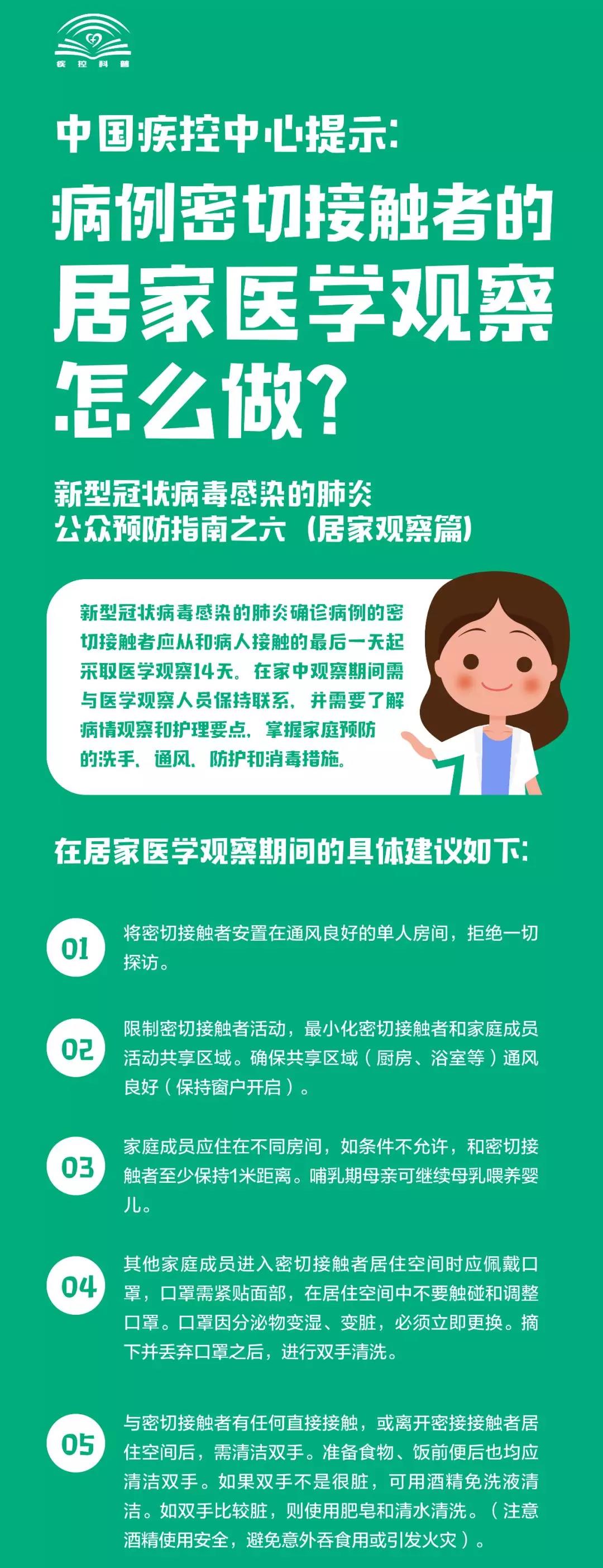 中国疾控中心提示:病例密切接触者的居家医学观察怎么做?