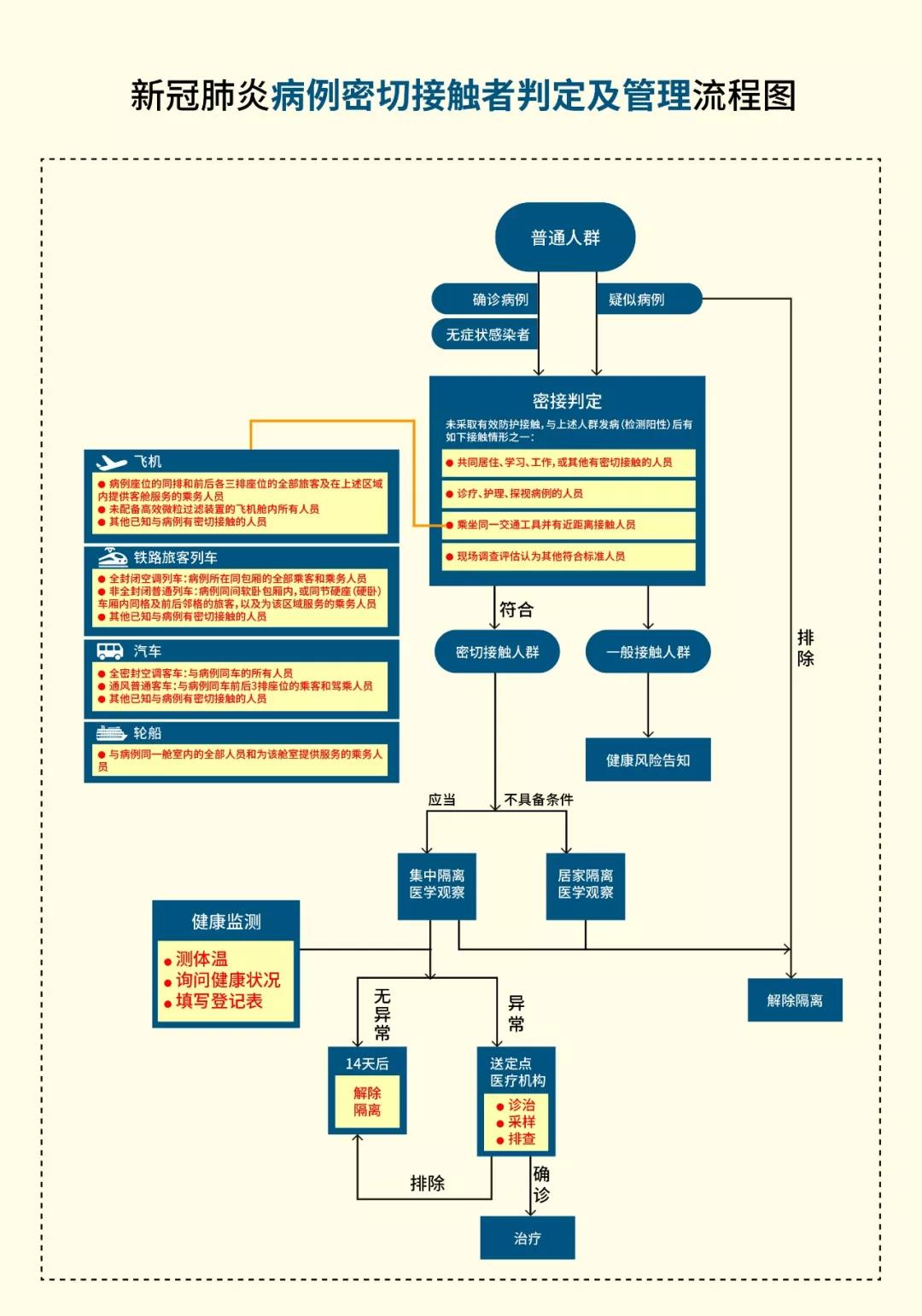 新冠肺炎病例密切接触者判定及管理流程图